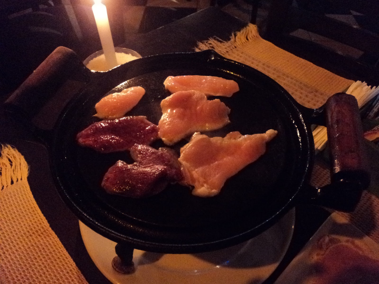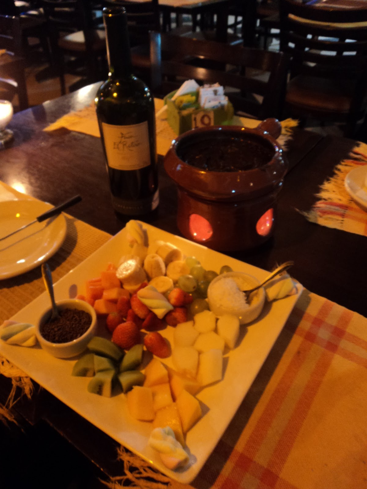 Na primeira noite (sexta) decidimos que curtiríamos um bom rodízio de fondue, nessa época de baixa temporada, todos os restaurantes estavam com o rodízio em promoção custando R$ 39,90. Optamos em ir no Le Fondue por ser especializado no prato e por ter um bom músico a noite acompanhado de seu violão.