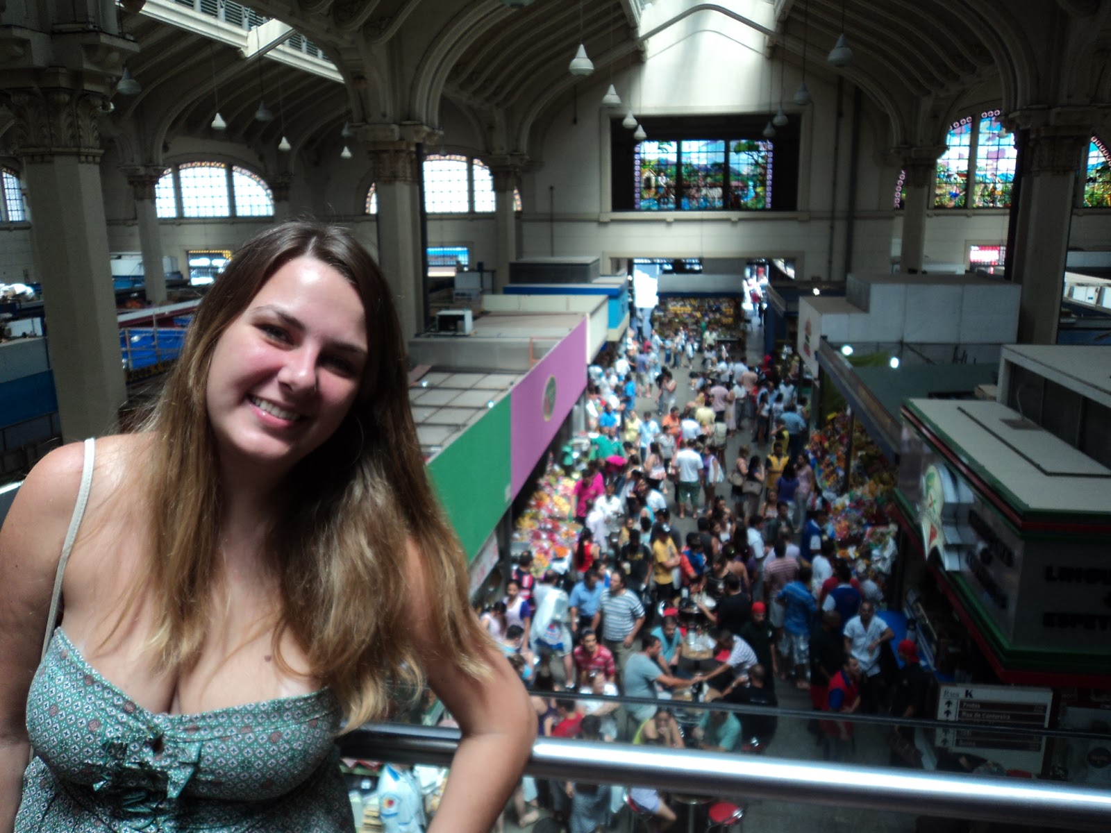 Antes, uma parada pra mostrar o mercado de cima e no fundo os belos vitrais. Detalhe: lotado!