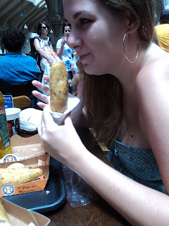 Mas, não posso de maneira alguma tirar o mérito do pastel de bacalhau! É enorme e tem muito, mas muito recheio! O sabor é ótimo e olha que eu não sou lá essas fãs de bacalhau. Dizem que a receita é super secreta. Enfim, não é à toa que ganhou fama mundial.