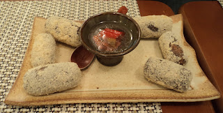 Para começar a petiscar a opção que de cara me chamou a atenção foi a porção de bolinho de mexidinho com queijo canastra. O bolinho foi servido numa porção com oito unidades e os bolinhos não são tão "inhos" assim.