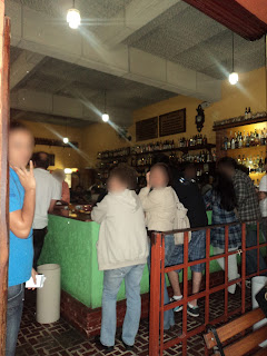Sentei numa mesa lá no fundo do bar no piso, que é um pouco mais alto.