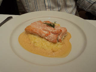 Claro que eu também dei uma garfadinha no prato do meu amigo (Erik) que também estava super saboroso e era um medalhão de salmão ao forno com risoto de laranja e páprica. Ele adorou!