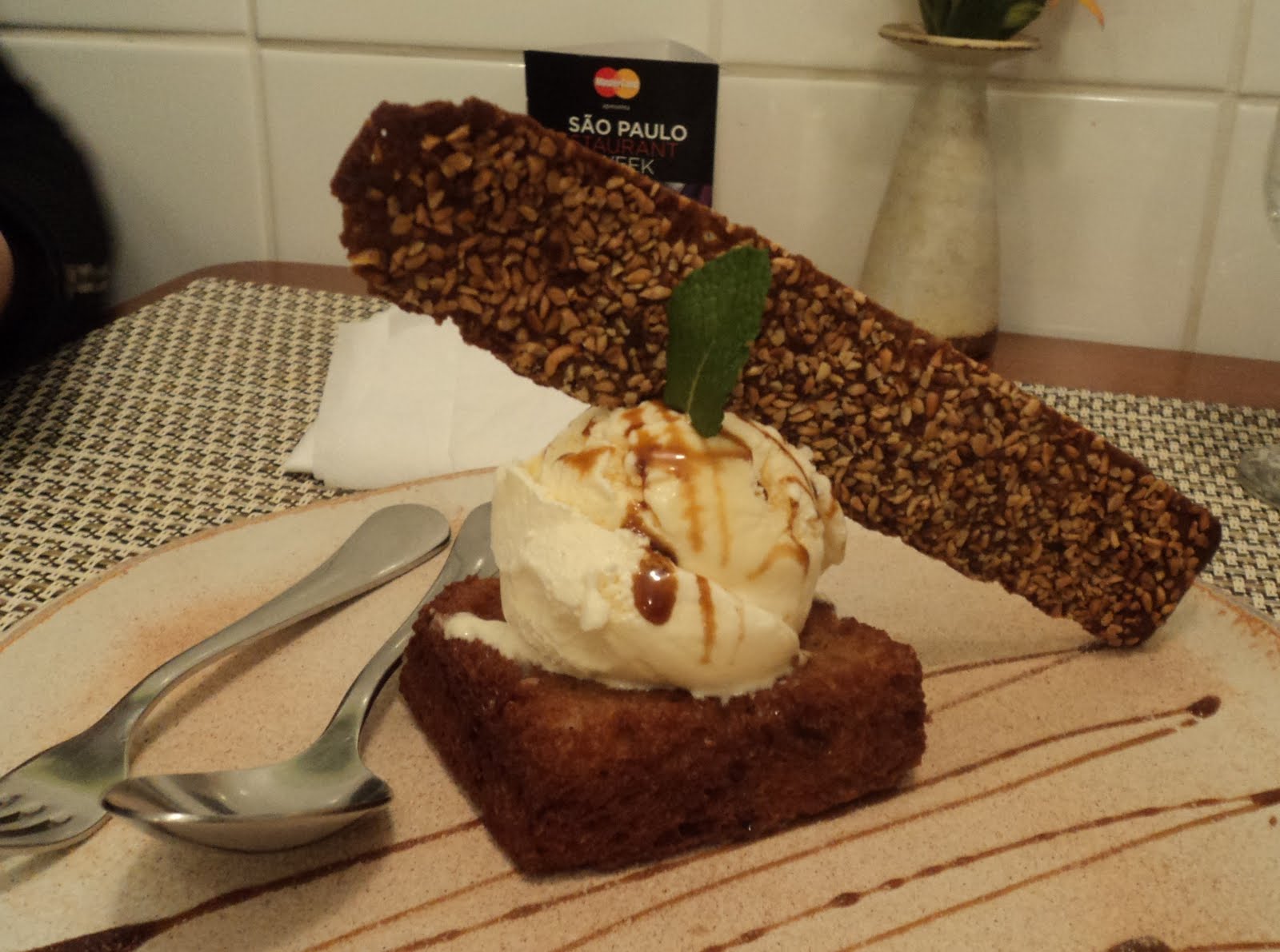 A rabanada é servida ao porto com sorvete e calda de caramelo e custa R$ 18,50. Ponto altíssimo para a apresentação do prato, super saboroso, combinação perfeita de doce que não fica enjoativo, mas a essa hora eu não consegui mais do que duas colheradas.