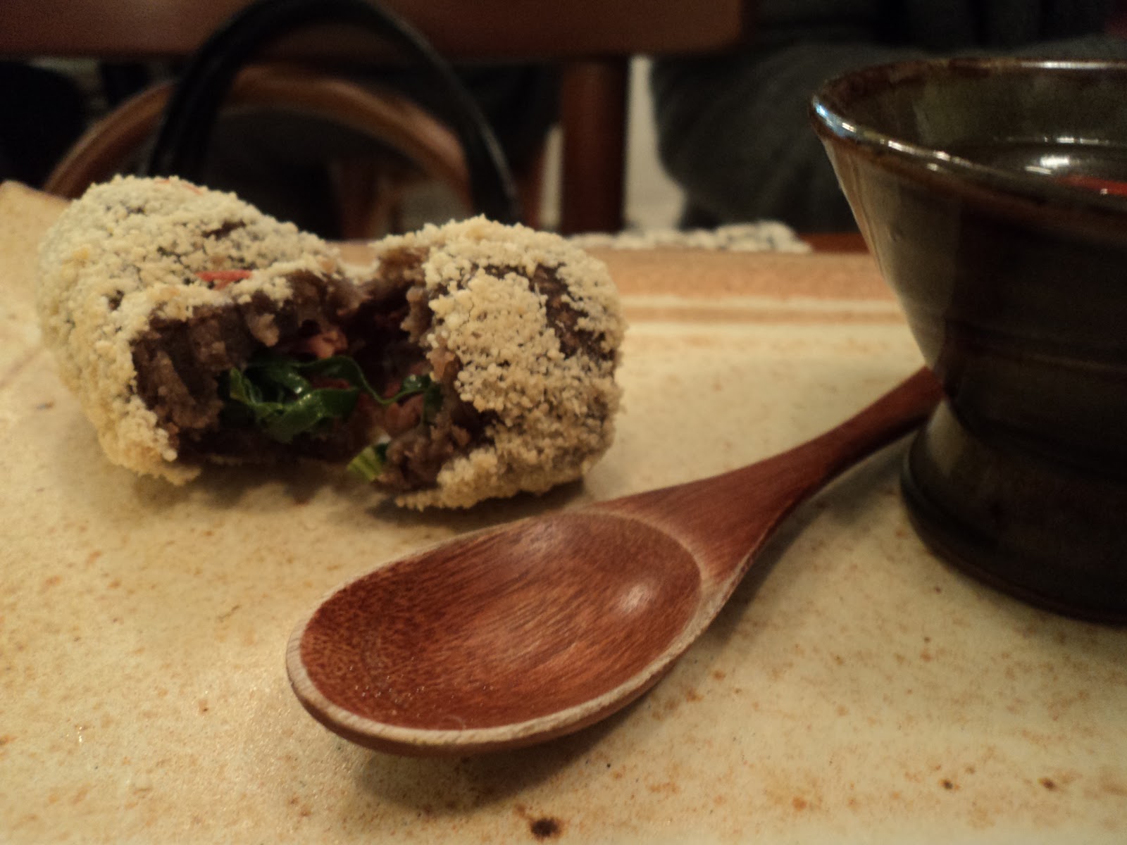 De cara na hora de pedir fomos informados que o picadinho da casa foi eleito o melhor de São Paulo pela revista Época e é claro que essa seria a nossa pedida. Detalhe: você pode pedir a versão acompanhado de salada e sobremesa pela bagatela de R$ 29,90 (e não é apenas no Restaurant Week) e o picadinho pode ser de carne ou frango e com os molhos tradicionais, oriental ou tailandês. Mas, antes vamos as entradas...